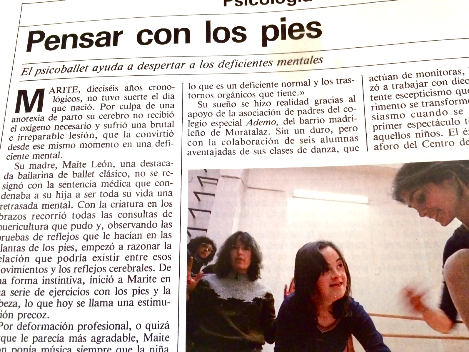 Y yo, de casualidad, empecé con mis clases de danza en el Kimura (el gimnasio del barrio) y caí en la clase de Maite León, a veces el Destino adopta formas extrañas y en este caso pasé de ser una adolescente que nunca había tenido contacto con el mundo de los  disminuidos psíquicos a meterme de lleno en esta realidad. Y ser una de las monitoras de esta aventura.